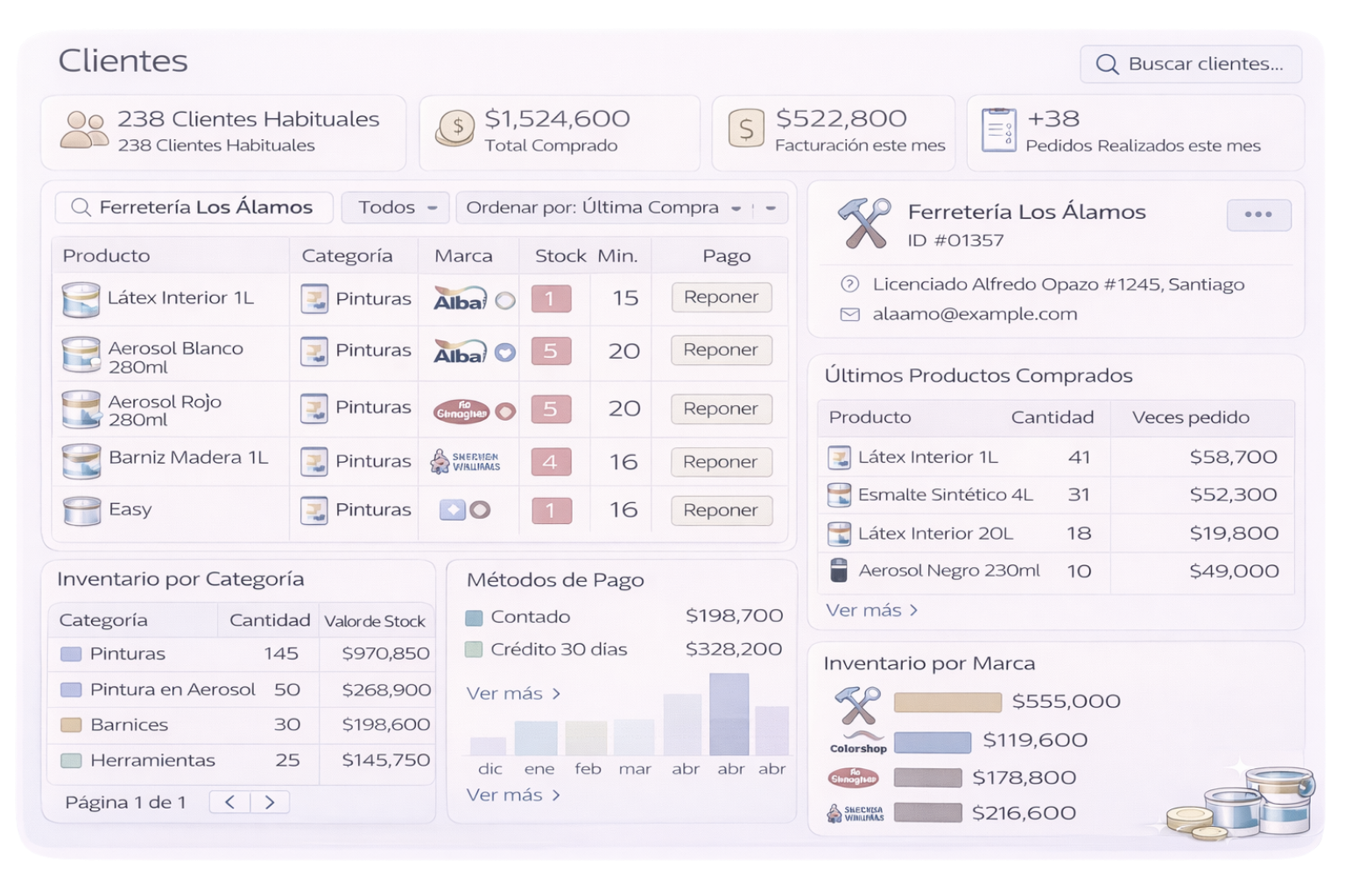 En una pinturería no solo se vende, también se asesora. El sistema acompaña al vendedor mientras busca productos, variantes y precios.