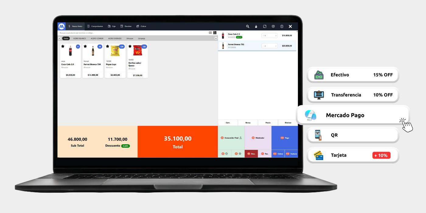 Diseñado para comercios que no pueden detenerse. Vendé, cobrá y facturá sin trabas, incluso en los momentos de mayor movimiento.